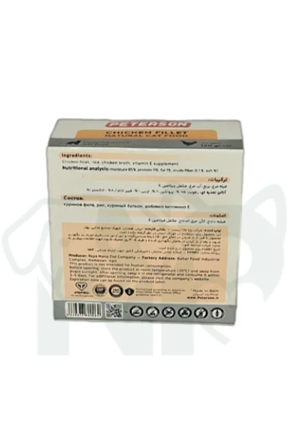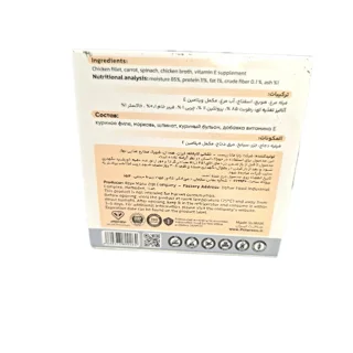 کنسرو گربه پترسون نچرال طعم مرغ، هویج و اسفناج 120 گرمی یک غذای مرطوب تولید شده بر پایه فیله مرغ بخارپز است که با سبزیجات طبیعی ترکیب شده. این محصول با استفاده از مرغ واقعی، هویج تازه و اسفناج تهیه میشود و تمام مراحل آماده سازی آن به صورت دستی انجام شده تا بافت طبیعی مواد غذایی حفظ شود. رطوبت 85 درصد به تامین آب مورد نیاز بدن گربه کمک میکند و پروتئین 11 درصد حاصل از مرغ بخارپز منبعی سبک و قابل هضم به شمار میرود.