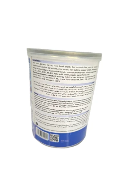 گوشت گوساله ، هویج ، سیب زمین ، برنج ، آب گوشت ، روغن ذرت ، فیبرطبیعی